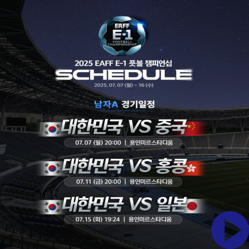 2025 EAFF E-1 풋볼 챔피언십 남자부 축구 경기가 7월 7일부터 16일까지 진행됩니다.